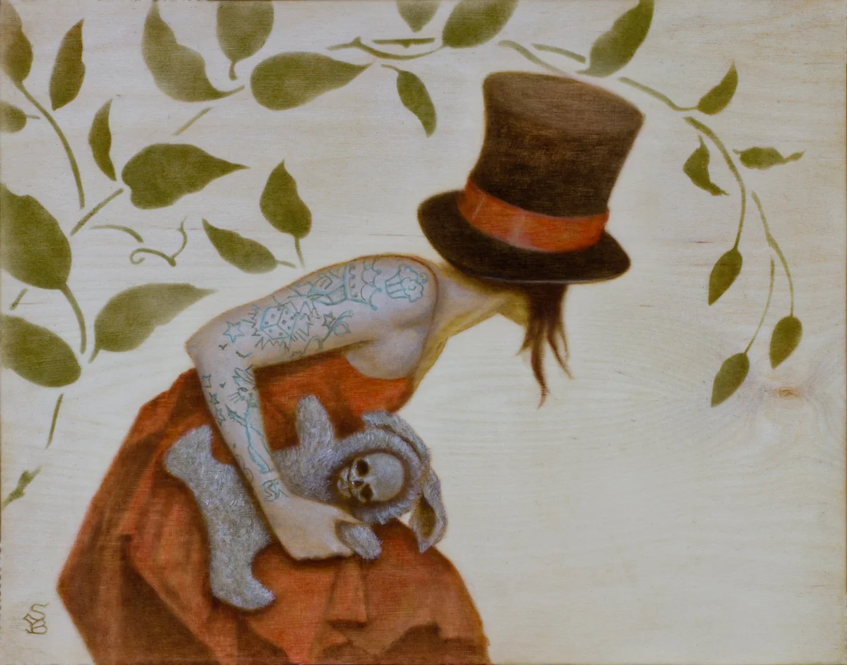 painter working in egg tempera and oil paint mische technique